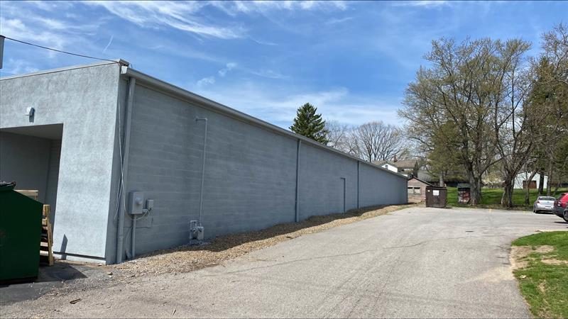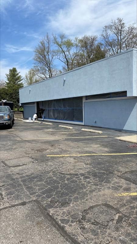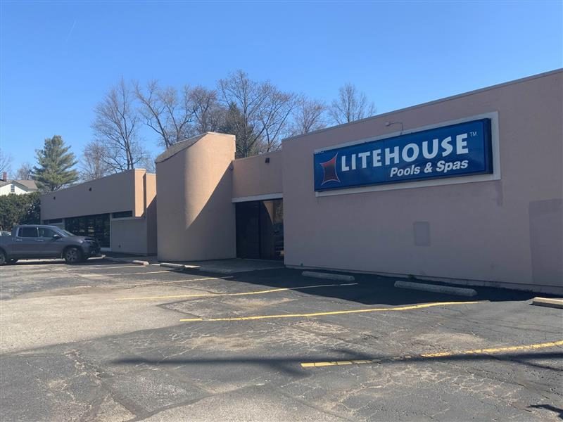 Below you can view photos from before and after our team painted the exterior of Litehouse Pools & Spas in Akron, Ohio.