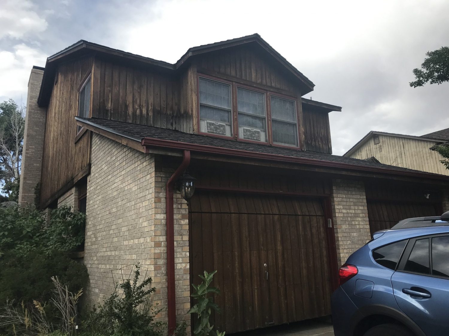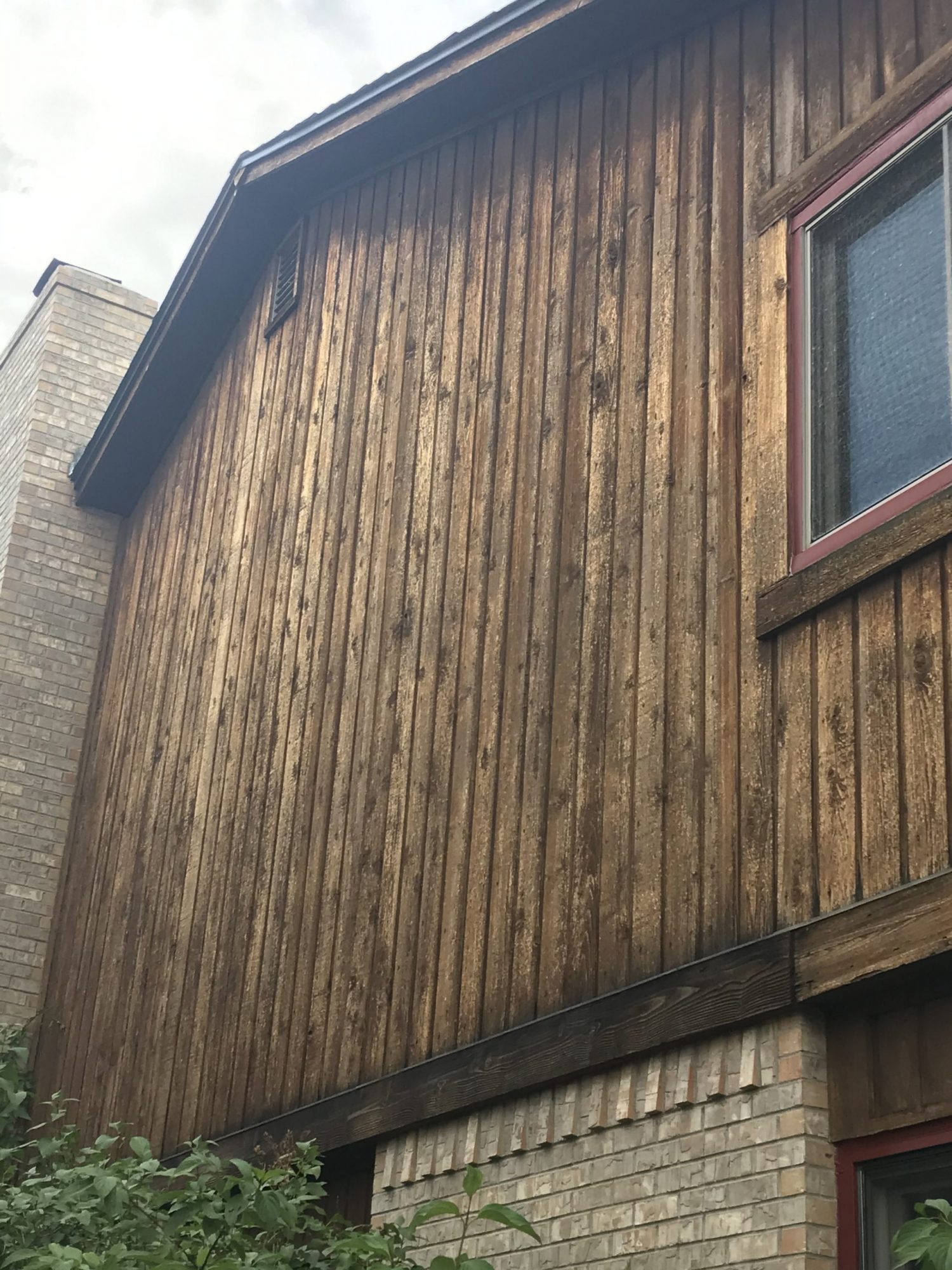The homeowners wanted to change the look of their weathered cedar siding. We used Sherwin-Williams Woodscapes Solid-Color Acrylic Stain to transform their exterior.