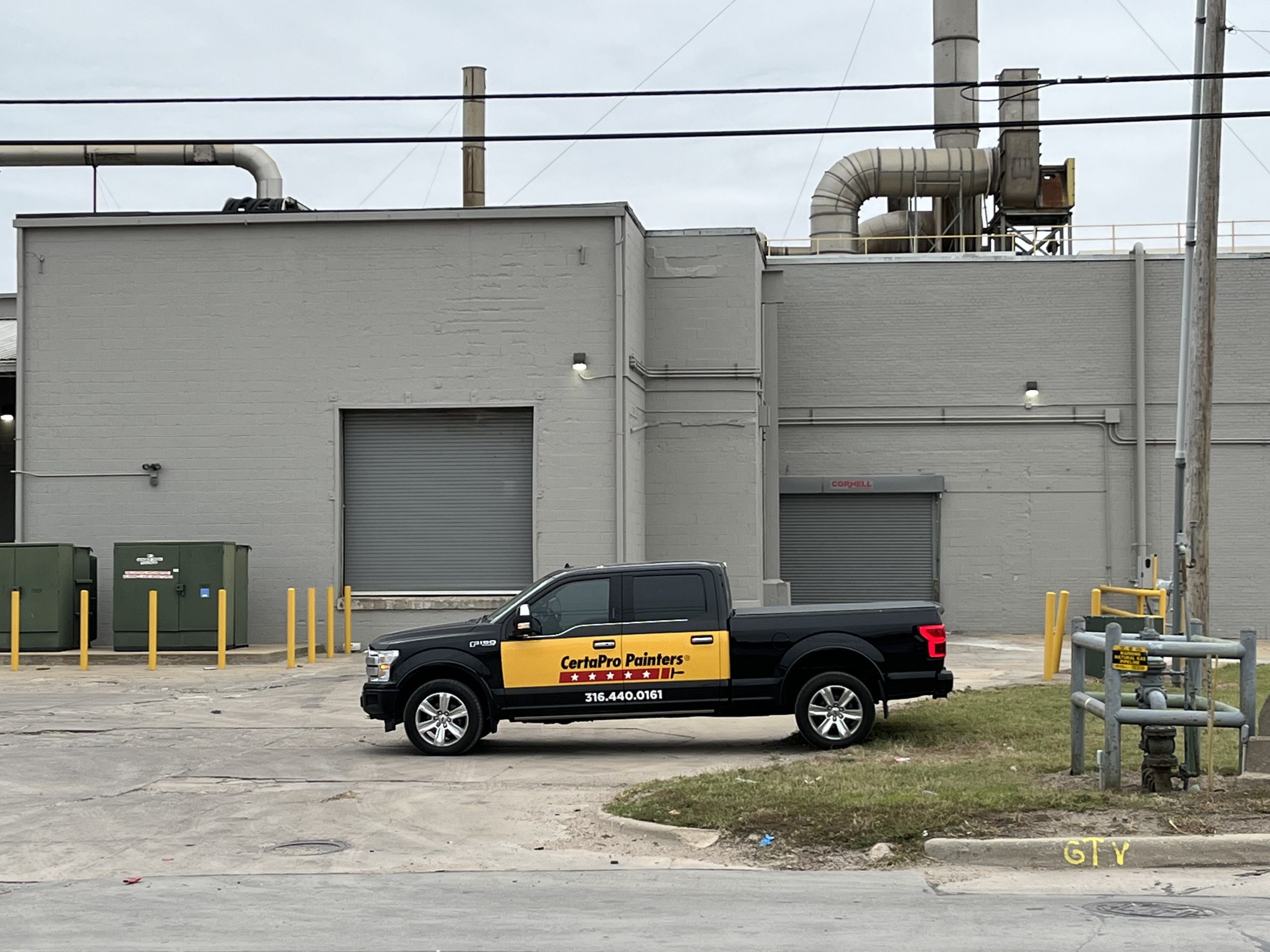 CertaPro Painters of East Wichita were recently hired to paint the exterior of this food supplier’s warehouse, covering up faded paint and chipping brickwork alike.