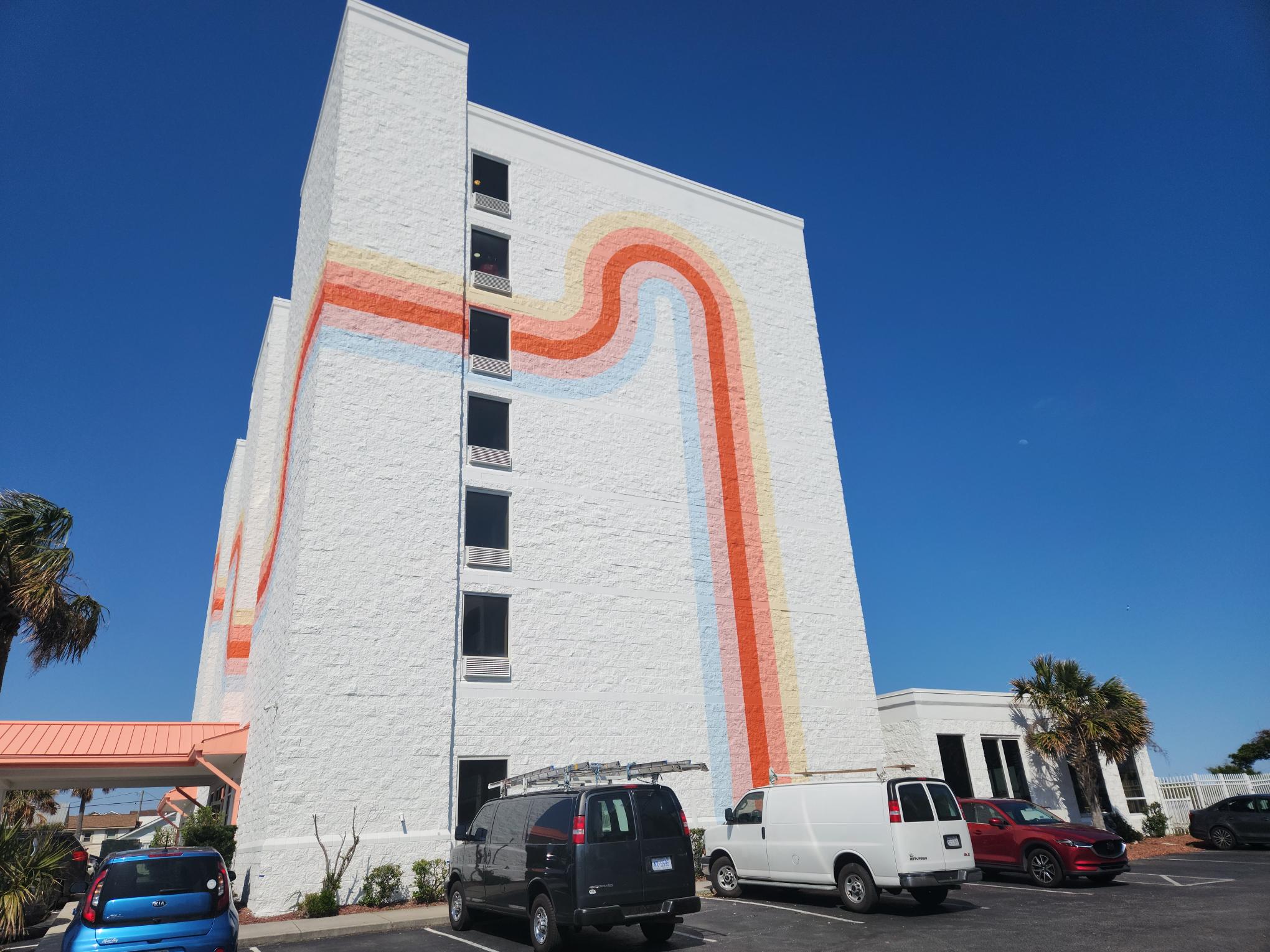In March, the team from CertaPro Painter® of Wilmington, NC, worked with Golden Sands in Carolina Beach, NC to produce a one-of-a-kind painting job on the exterior of their hotel property. Our team had to map out what we like to call “the rainbow” project lines to ensure everything was spaced correctly before our team took to painting out all the colors around the building.