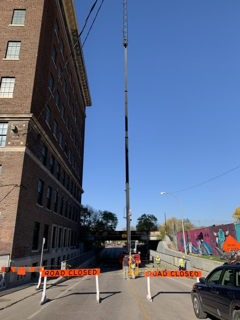 Our team was tasked with the intricate job of painting the upper cornice and decorative trim of the historic J.R. Watkins Company Building at 90 Annabella, Winnipeg. Key challenges included handling deteriorating lead paint and rust on metal surfaces while complying with environmental safety protocols. The building’s height and its proximity to obstacles like train tracks and green spaces added complexity to access. Additionally, logistical issues involved managing overspray in a nearby parking lot and coordinating street closures with city authorities. The project also faced a tight timeline, requiring the crew to work long hours to complete the work before the onset of adverse weather.