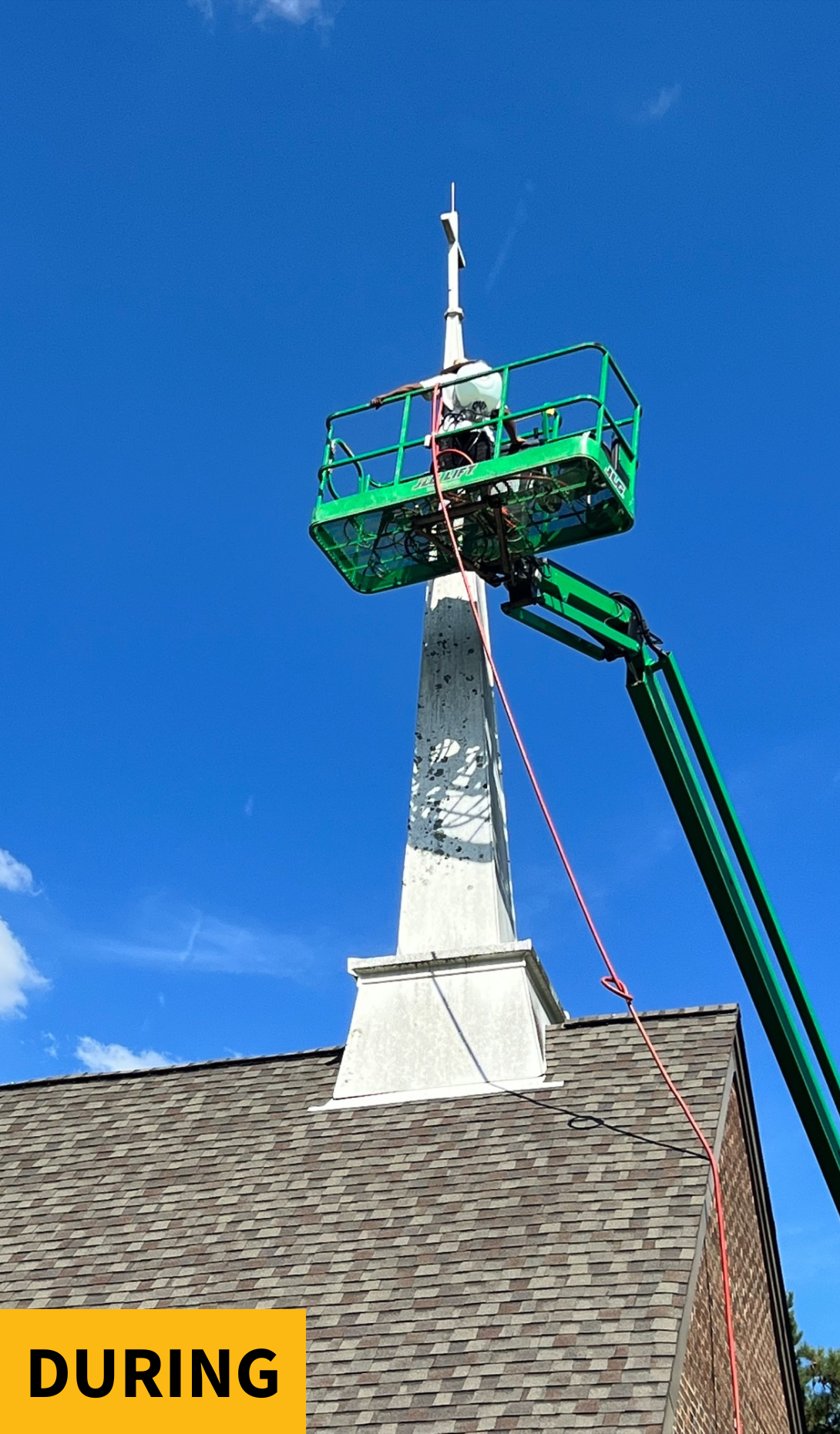 A Church in Clemmons, NC tasked us with restoring their cherished church steeple, a project that involved power washing and painting. Read our Church Steeple Painting Case Study to learn more about the project!
