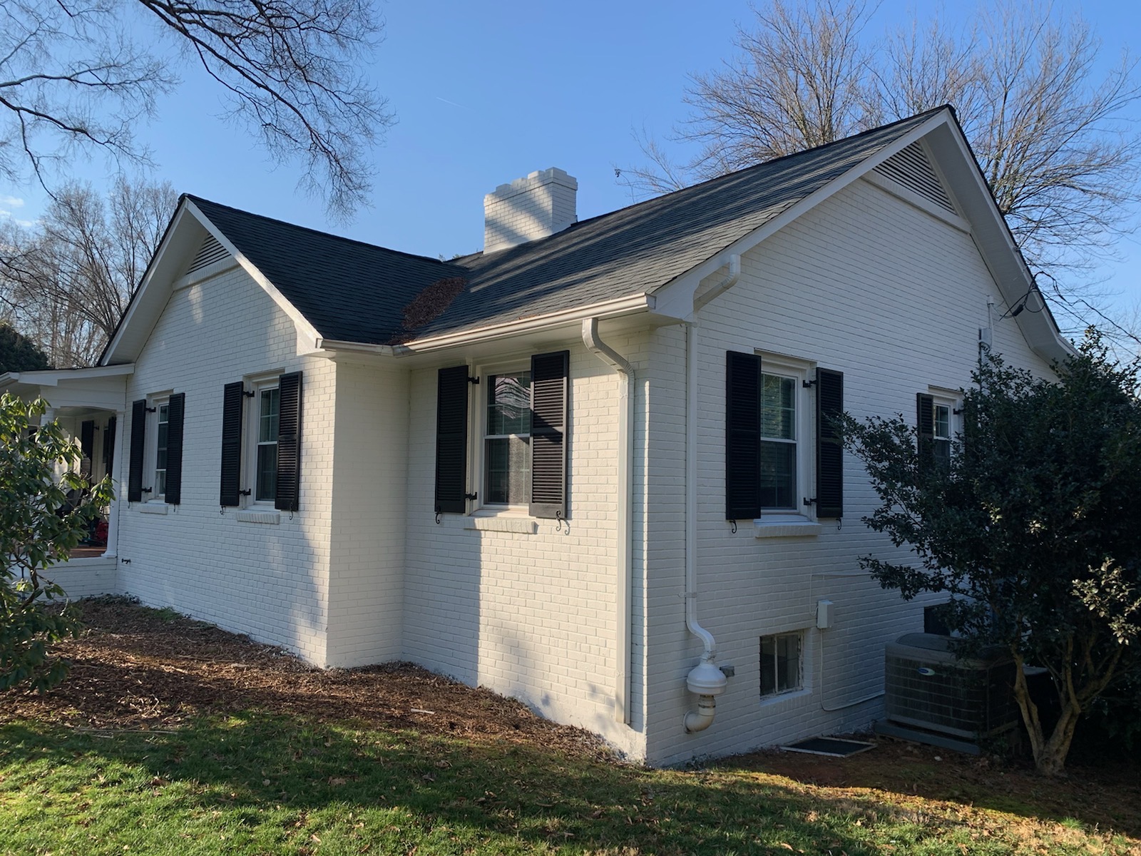 Homeowners in Winston-Salem reached out to us to paint the exterior of their red brick home. After our crew repaired areas with rotted wood and prepped all exterior surfaces, our team of professional painters painted the brick home SW 7008 Alabaster and the front door SW Tricorn black.