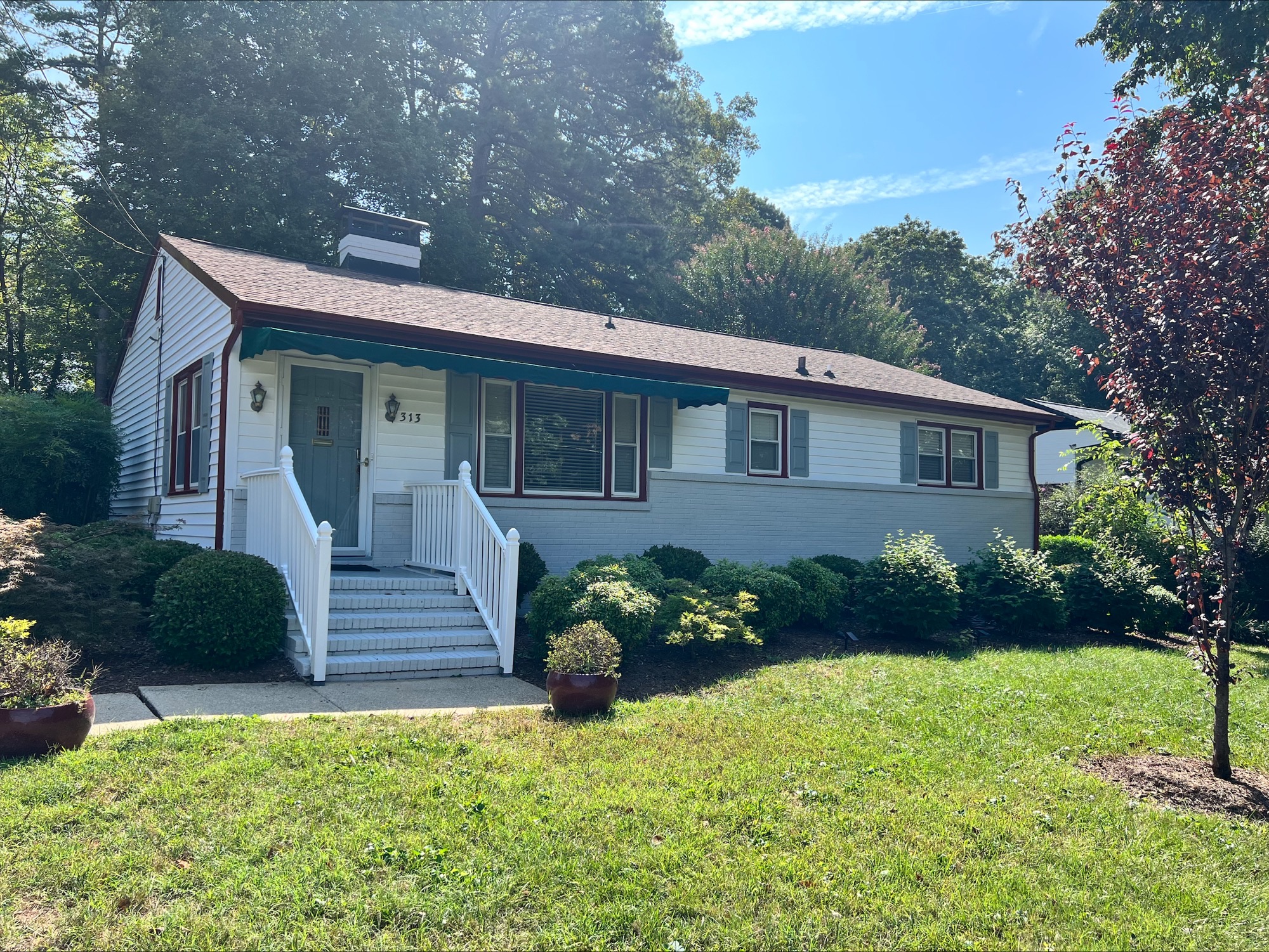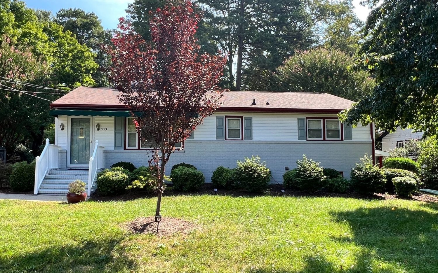 Homeowners in Winston-Salem entrusted our team of professional painters to breathe new life into the exterior of their home. Employing only the best materials, we applied Benjamin Moore’s high-quality exterior paint to ensure lasting beauty and protection. Our team painted the bricks Stonington Gray as well as the shutters and front door of the home Pearl Gray. To complement the overall aesthetic, we painted the soffits, downspouts, and window frames with a rich and inviting Country Redwood hue. The transformation not only enhances the curb appeal but also showcases our commitment to delivering exceptional results, leaving our clients thrilled with their refreshed home.