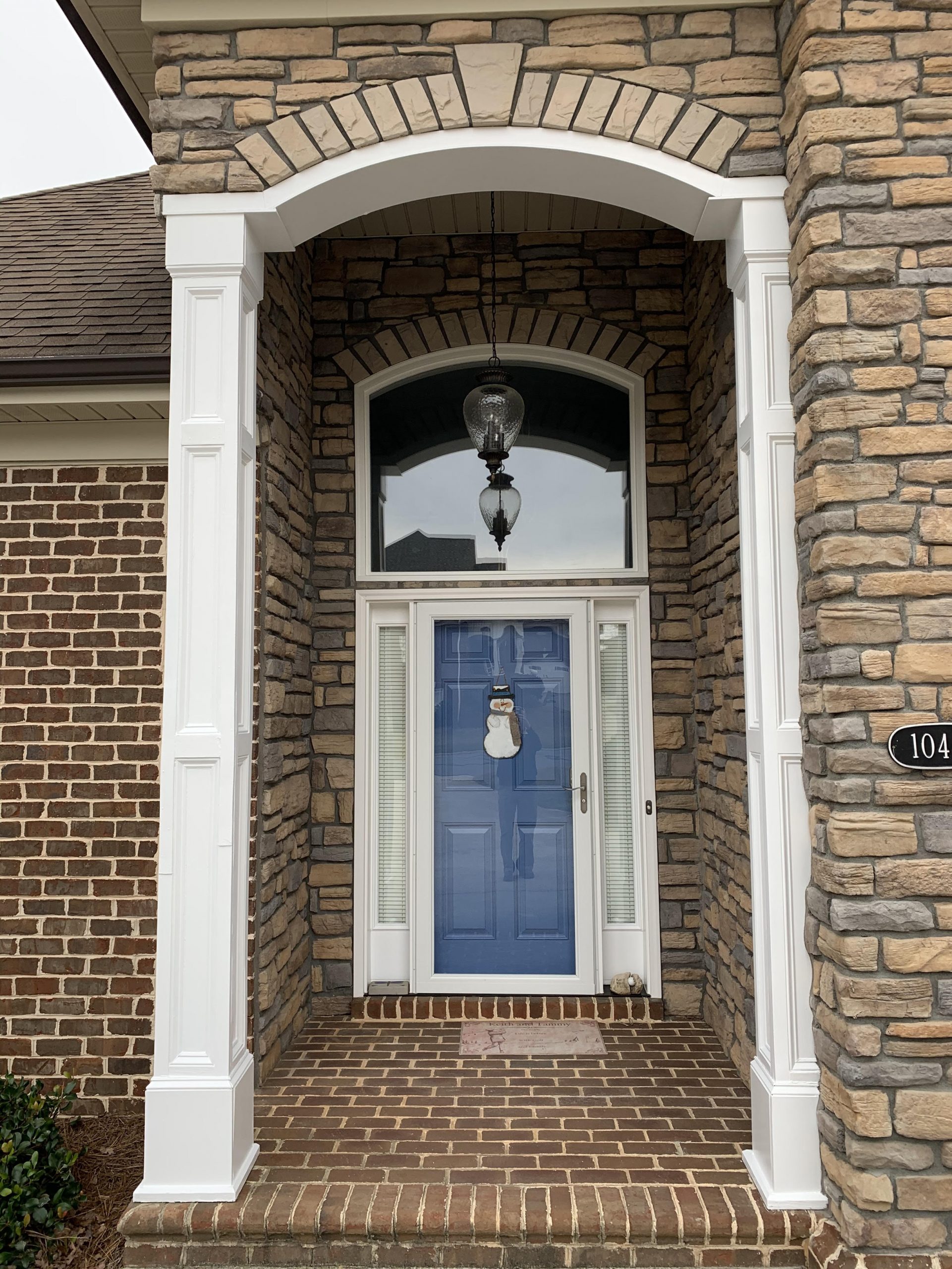 Homeowners in Clemmons, NC tasked us refreshing the front entrance of their home’s exterior. The job involved repairing cracks as well as painting the front window frames, door frames, and columns with an exterior semi-glass in a white finish.