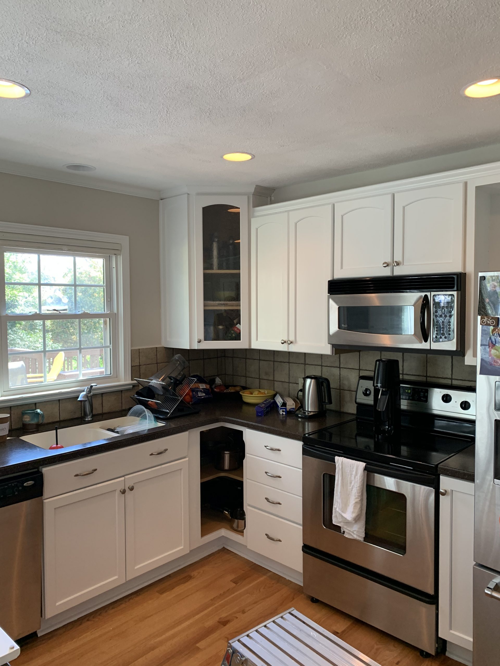 Homeowners in Winston-Salem reached out to us to help to refresh their kitchen cabinets. Our crew painted their cabinets from a mustard yellow to white to give their kitchen a fresh new look.