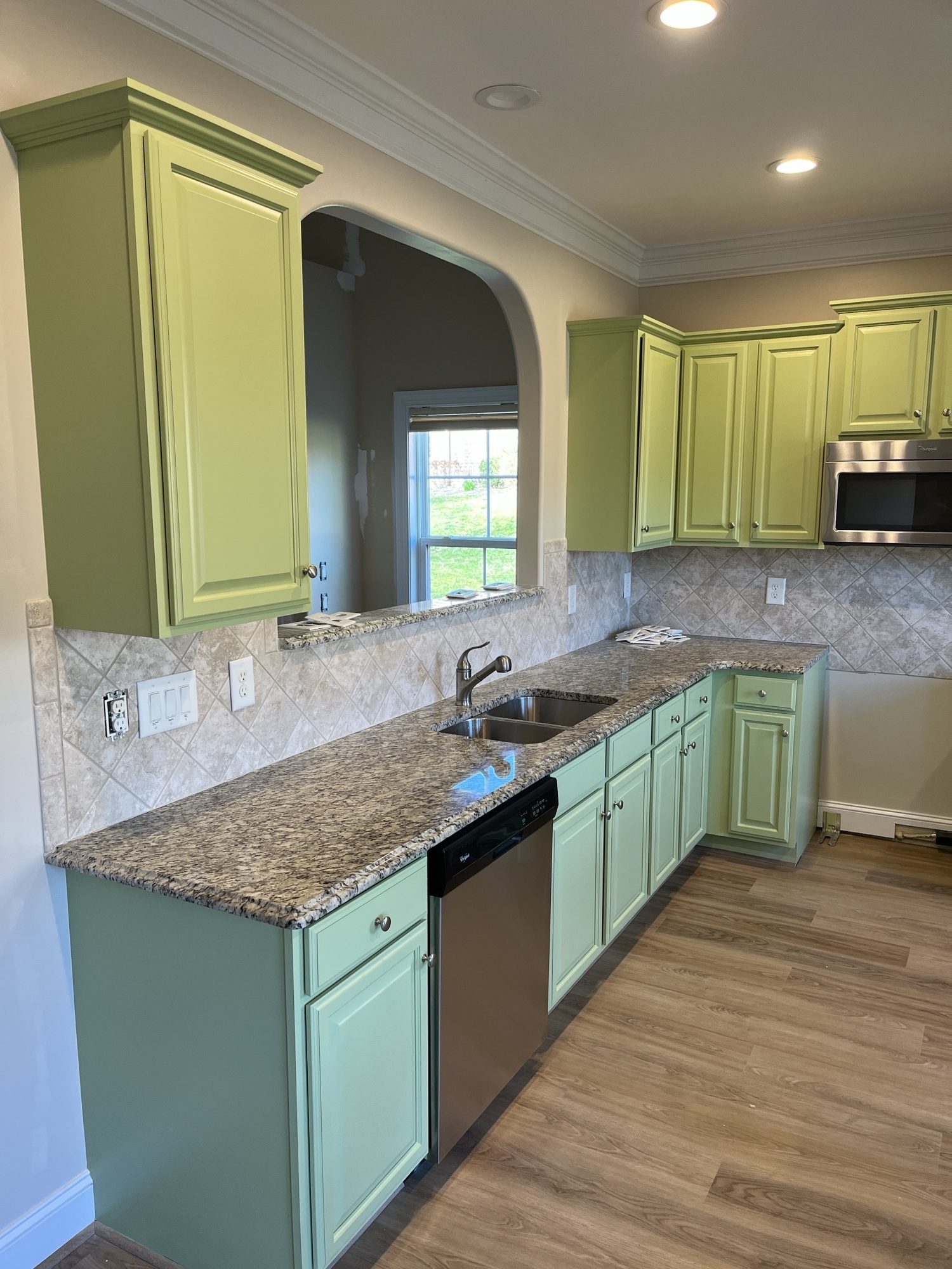 Our interior painters were hired by homeowners in Winston-Salem, who required our assistance in revamping the color of their kitchen cabinets. To give their kitchen a fresh new look, our team painter their brown cabinets a refreshing SW Great Green.