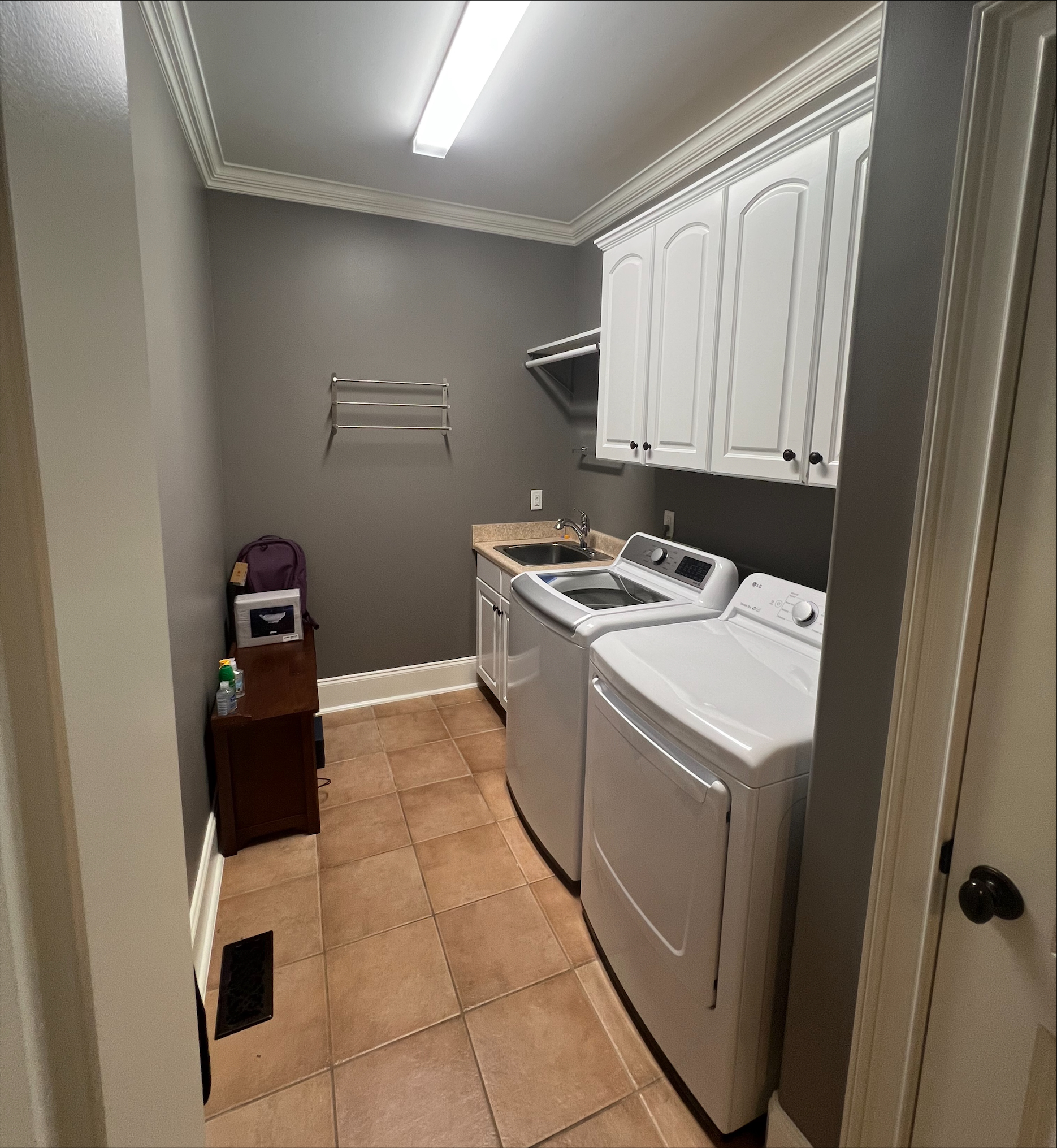 Homeowners in Winston-Salem reached out to us to update the color in their laundry room. Our team of interior painters painted the walls in SW Dovetail and the cabinets in SW Pure White. Our client was very happy with the end result!