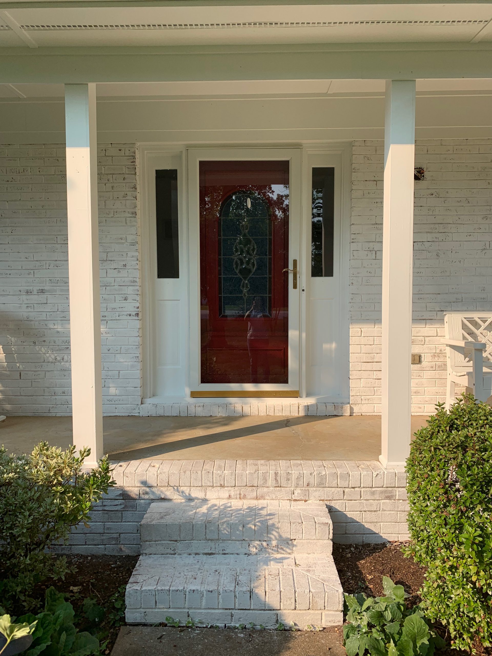 Homeowners in Winston-Salem reached out to us to limewash their red brick home. Our team also painted the home’s siding in Sherwin Williams Pavestone Gray.