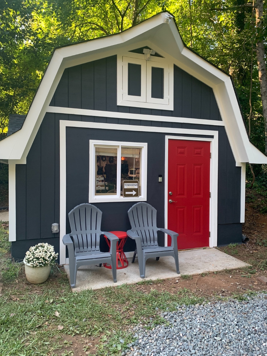 Homeowners in Pfafftown reached out to us to paint the exterior of a barn that they turned into a music studio. After our crew washed all exterior surfaces and made minor repairs where needed, our team of professional painters painted all siding dark gray, trims white, and the front door red.