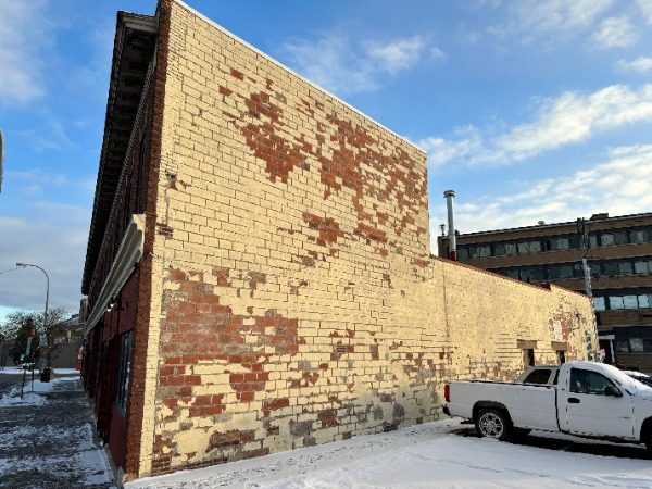 One of the primary challenges was working with the age and fragility of the building’s masonry surfaces. Peeling and deteriorated paint required a delicate approach to remove failing material without damaging the underlying brick.