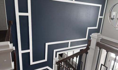 One of the key challenges was working with the high ceilings in the foyer and carefully executing intricate designs, which required precision and special equipment. Throughout the process, our crew and production associate collaborated closely with the homeowner to ensure they were completely satisfied with the layout and finish of the accent trim, resulting in a beautifully updated and personalized interior space.