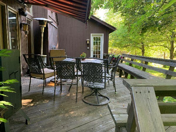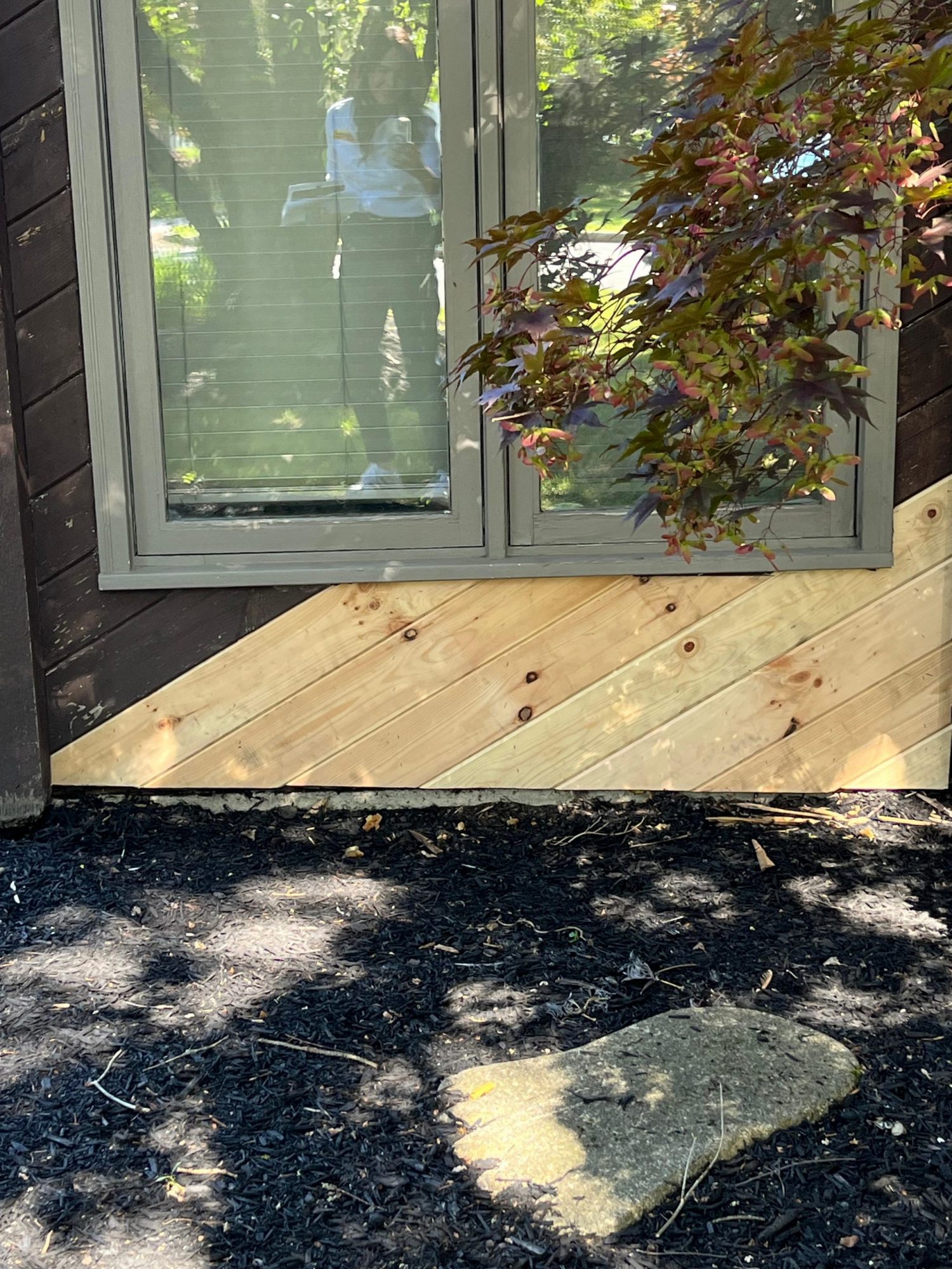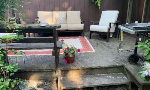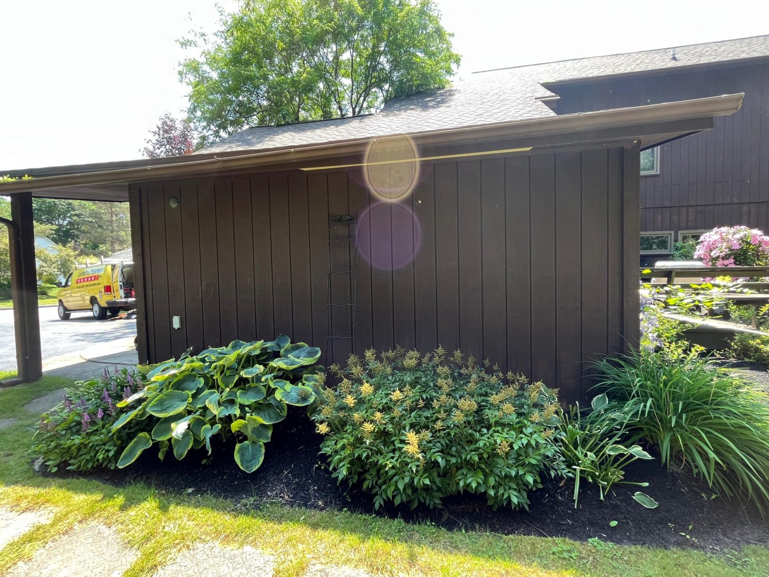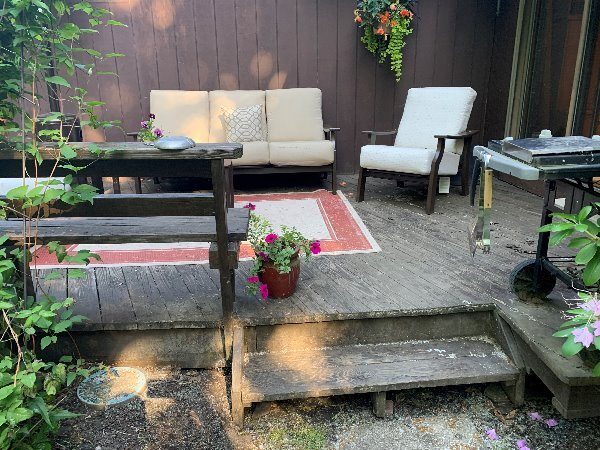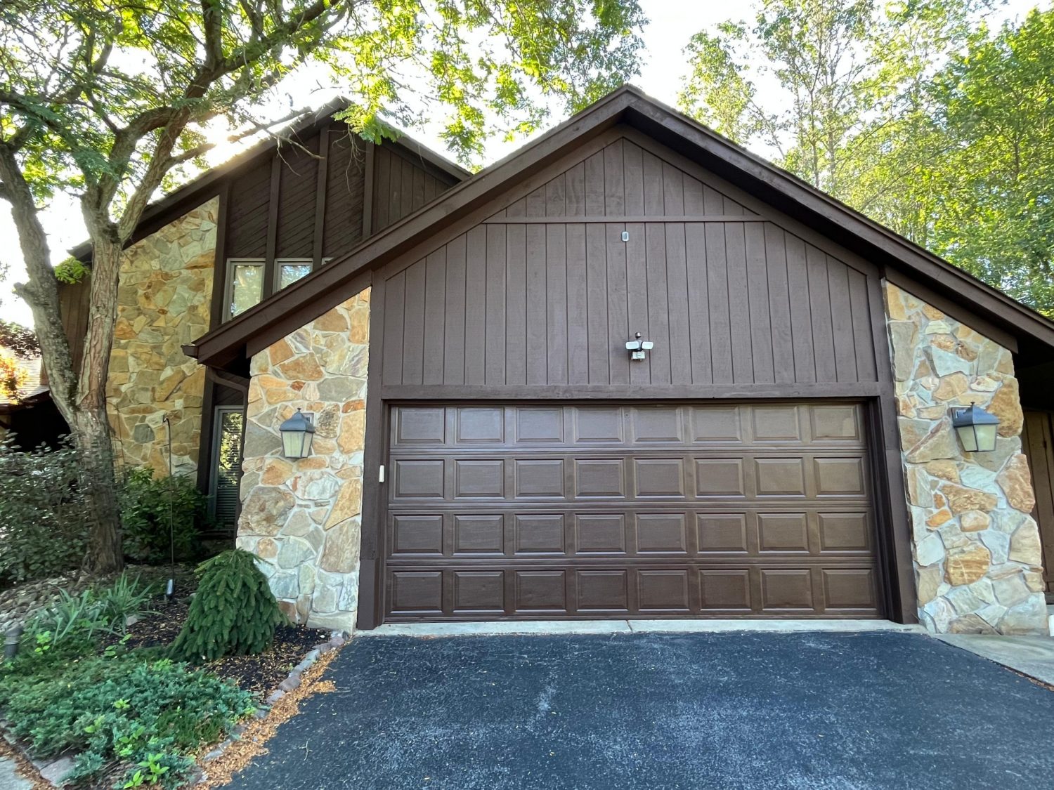 This was a full exterior project that included T1 11 siding, soffits, fascia, windows and window frames, door frames, garage door and frame, and rear deck structures. Additional areas such as deck spindles, steps, benches, and handrails were also addressed as part of the restoration.