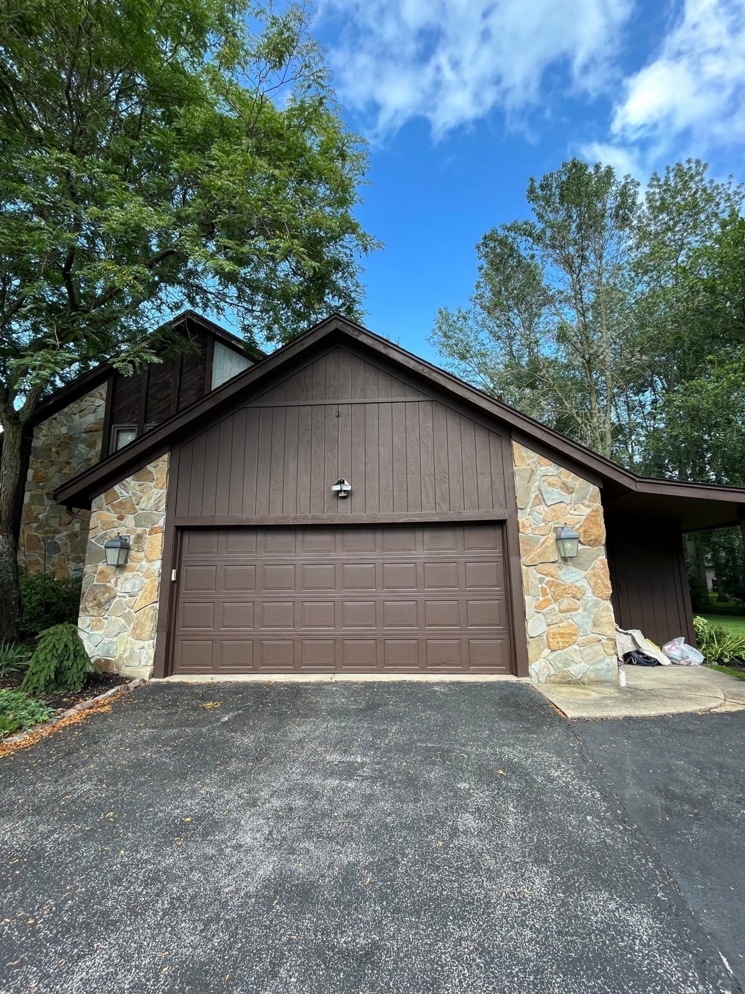 This project required more than a standard repaint. Before any coatings were applied, the team completed a full power wash to remove dirt, debris, and mildew. Extensive carpentry repairs followed, including wood replacements across multiple areas of the home. Smaller repairs were handled using wood filler, followed by sanding to create a smooth and consistent surface.