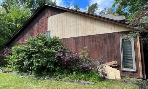 In August 2023, our team completed a 15 day exterior painting and restoration project for a two story single family home in East Amherst, NY. Built in 1984, this 1,898 sq ft home with 3,210 sq ft of living space had begun to show clear signs of wear from years of exposure to Buffalo’s weather conditions. The goal of the project was to restore the home’s appearance while addressing underlying structural issues through detailed carpentry repairs and thorough surface preparation.