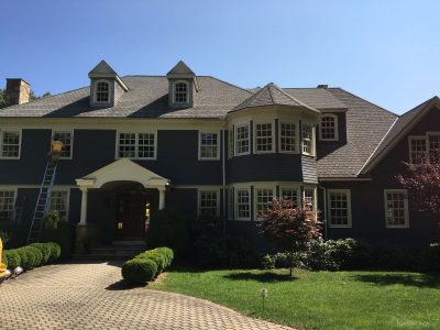Exterior House Painting – Gray Wood Siding with White Trimwork