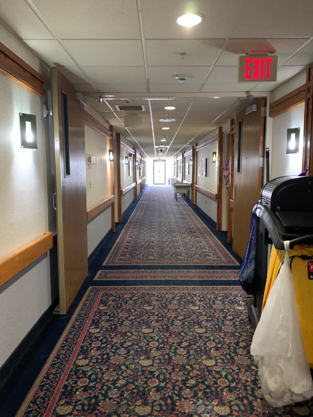 Due to the complexity of the job & to accommodate the residents and staff, the work was completed during overnight hours on a schedule by our traveling team. All floors were covered. In order to mitigate dust, the project was completed in sections, and areas were tarped as necessary.