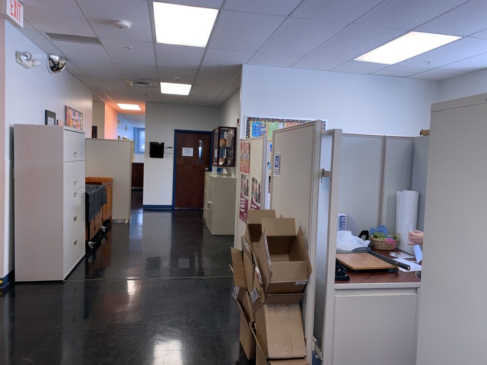 The staff was temporarily housed in another area close by while the work was being done. All painting needed to be completed prior to furniture installation, so the crew worked diligently to complete the job on schedule, working extra hours as necessary. Extra prep time was needed to remove all the old glue after the wall guards were removed and measures were taken to mitigate dust.
