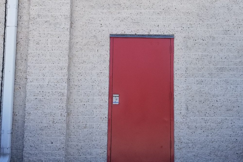 The building was first pressure washed to remove debris, peeling paint, dark spots, and to prepare block surfaces for coating. It took the crew several days to remove all black spots from the split brick. After pressure washing the CMU block, there were still areas of peeling paint and more exposed bare areas. These peeling areas were scraped to a sound substrate, bare areas were primed using an elastomeric masonry primer, then all CMU block was top coated with two coats of an exterior acrylic latex coating by Sherwin Williams. The man doors, bollards and metal railings were scraped, sanded, and primed as necessary with a metal primer, then top coated with two coats of SW Pro Industrial Urethane Alkyd Enamel. To reach the top of the building, we used a 60-foot lift and ladder.