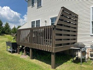 Recently we worked on a project for the Deerfield Home Owners Association (HOA) in the Flying Hills Development in Reading, PA. We painted front doors, trim, and light posts, pressure washed, and stained the rear decks of 69 units. The units needed fresh paint and a more consistent look to match HOA rules. The decks had various colors and finishes, so the HOA chose two solid deck stains by Sherwin Williams for uniformity. The job involved scraping, sanding, caulking, hammering nails, pressure washing, priming, and painting. The result was a clean, cohesive appearance for the entire community.