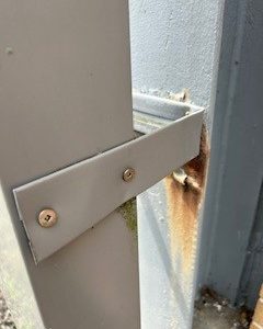 We used special equipment such as mechanical grinders and sanders to properly prepare the surfaces of the posts. Additionally, despite some sections of the building being over 20 feet high, all work was completed from ladders, showcasing our commitment to efficiency and safety.